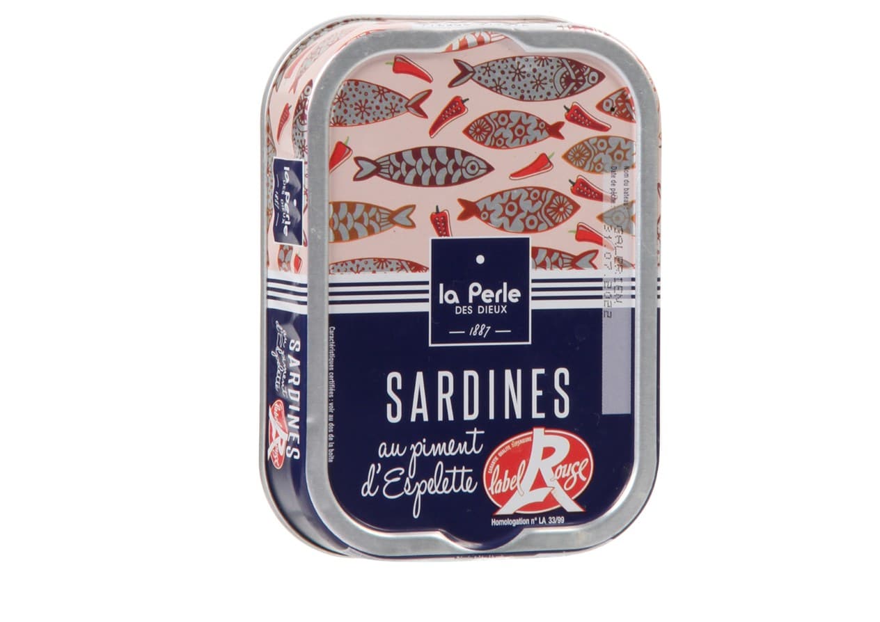 Les Sardines piment d’Espelette la Perle des Dieux sont une des références indispensables pour tous les collectionneurs. Elles proviennent du port sardinier de Saint Gilles Croix de Vie en Vendée.